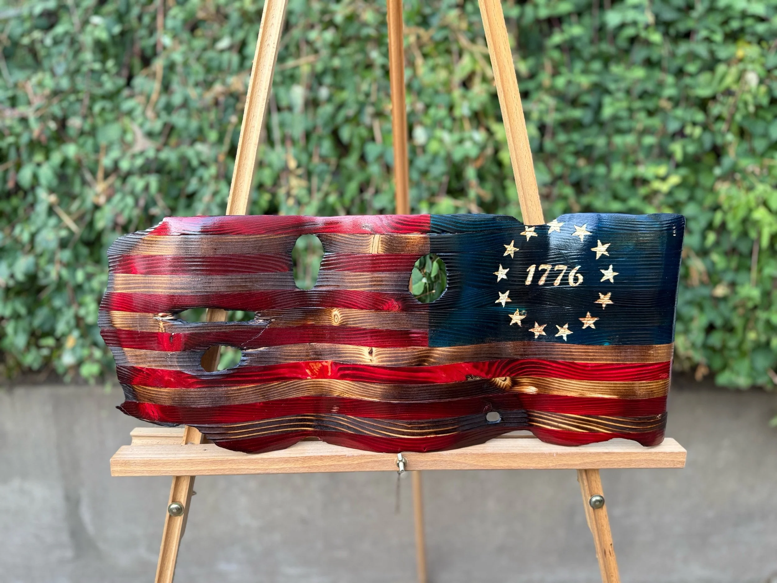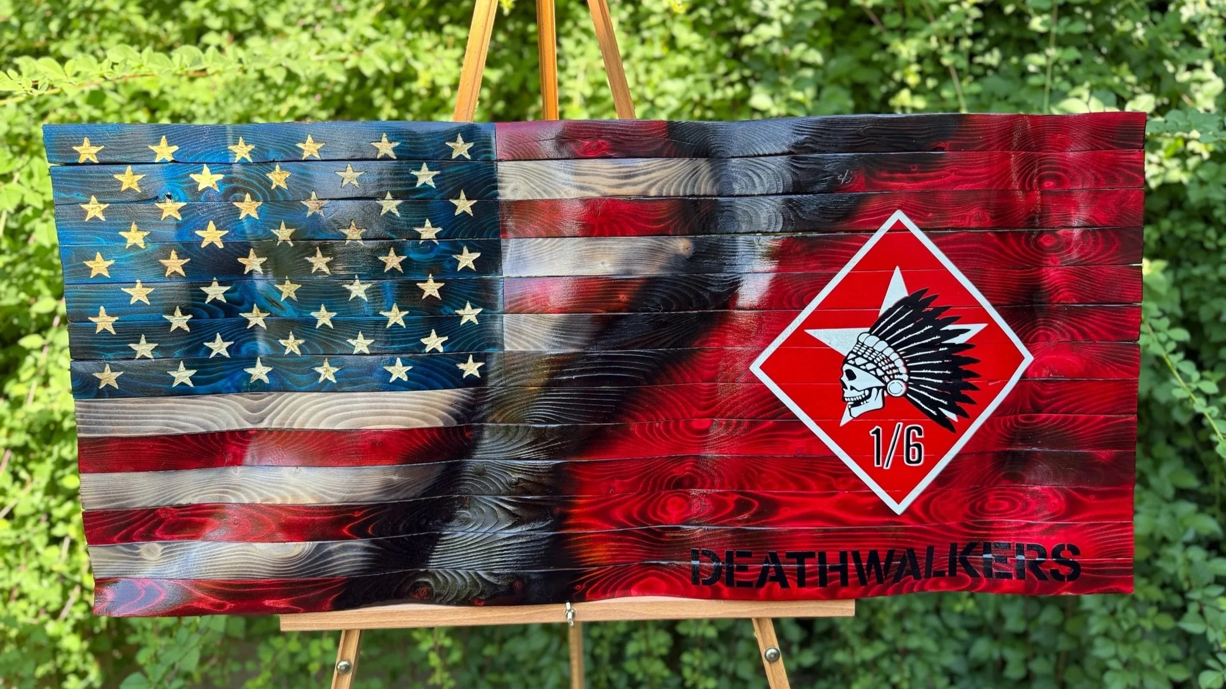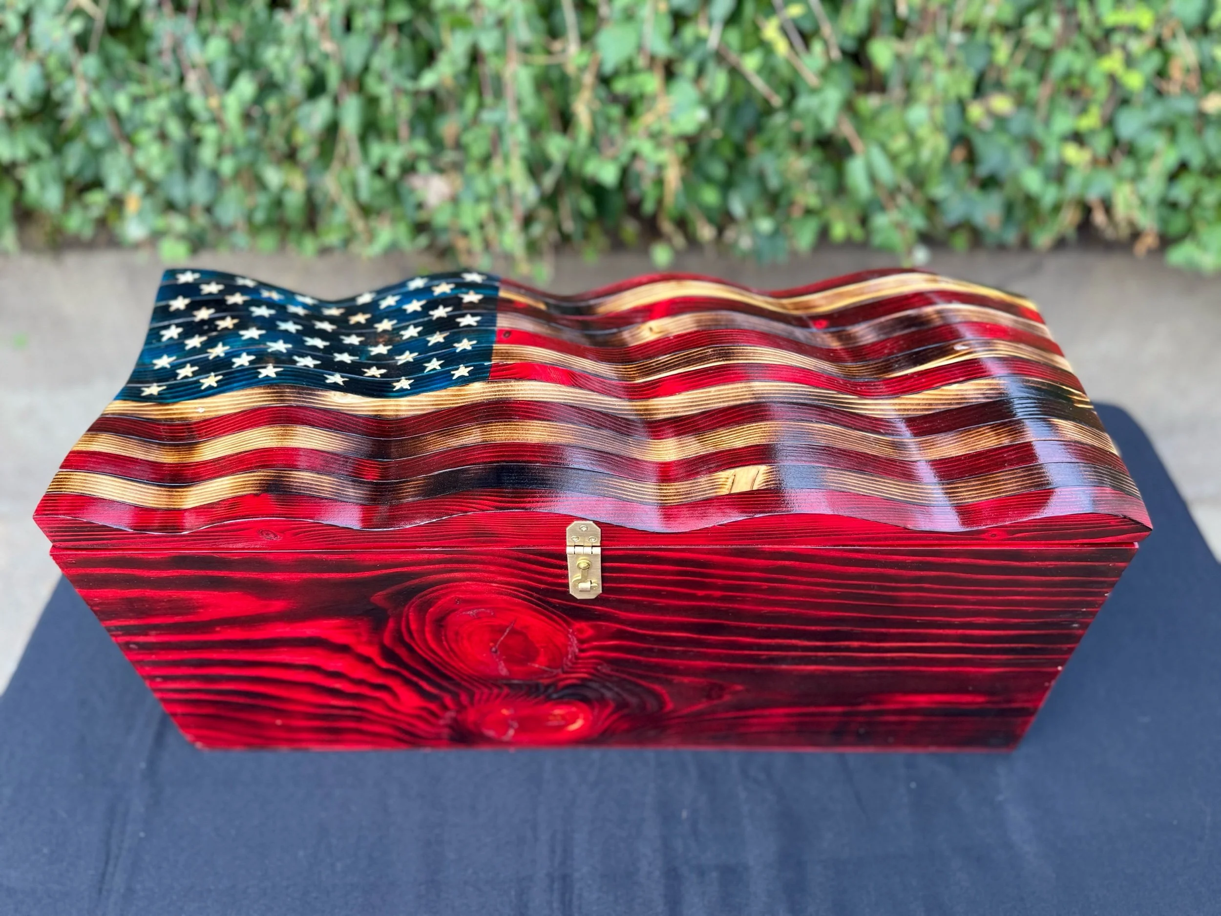 Categories: All Flags Barn Quilts Repurposed Vintage Home Goods Crochet Jewelry Cast Iron Seasoning All / American Footlocker $125.00 Double Wavy American Flag $100.00 Betsy Ross Flag $100.00 1776 Betsy Ross Flag $100.00 Lath Board Flag Sale Price: $50.00 Original Price: $80.00 Sale Small Wavy Flag $60.00 Small Deathwalker Flag $60.00 Deathwalker Flag $200.00 Framed American Flag Sale Price: $80.00 Original Price: $125.00 Sale American Flag/ Deathwalker Flag $200.00 Large Wavy Flag $200.00