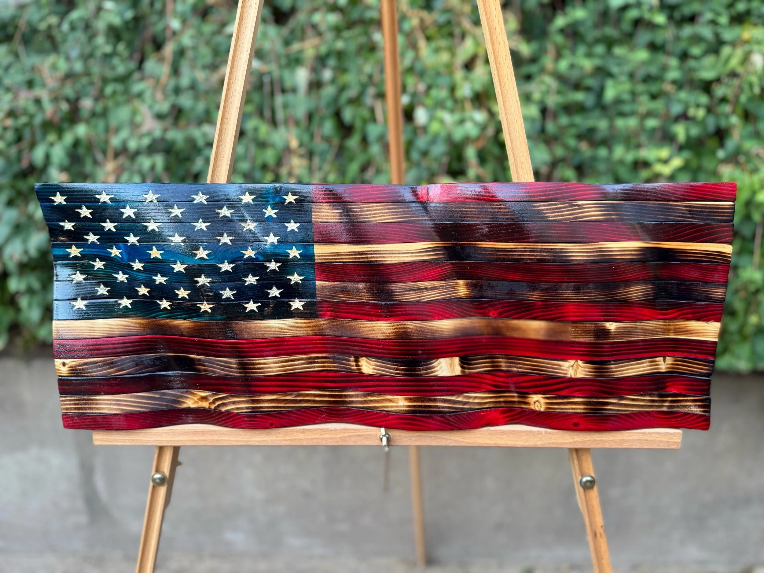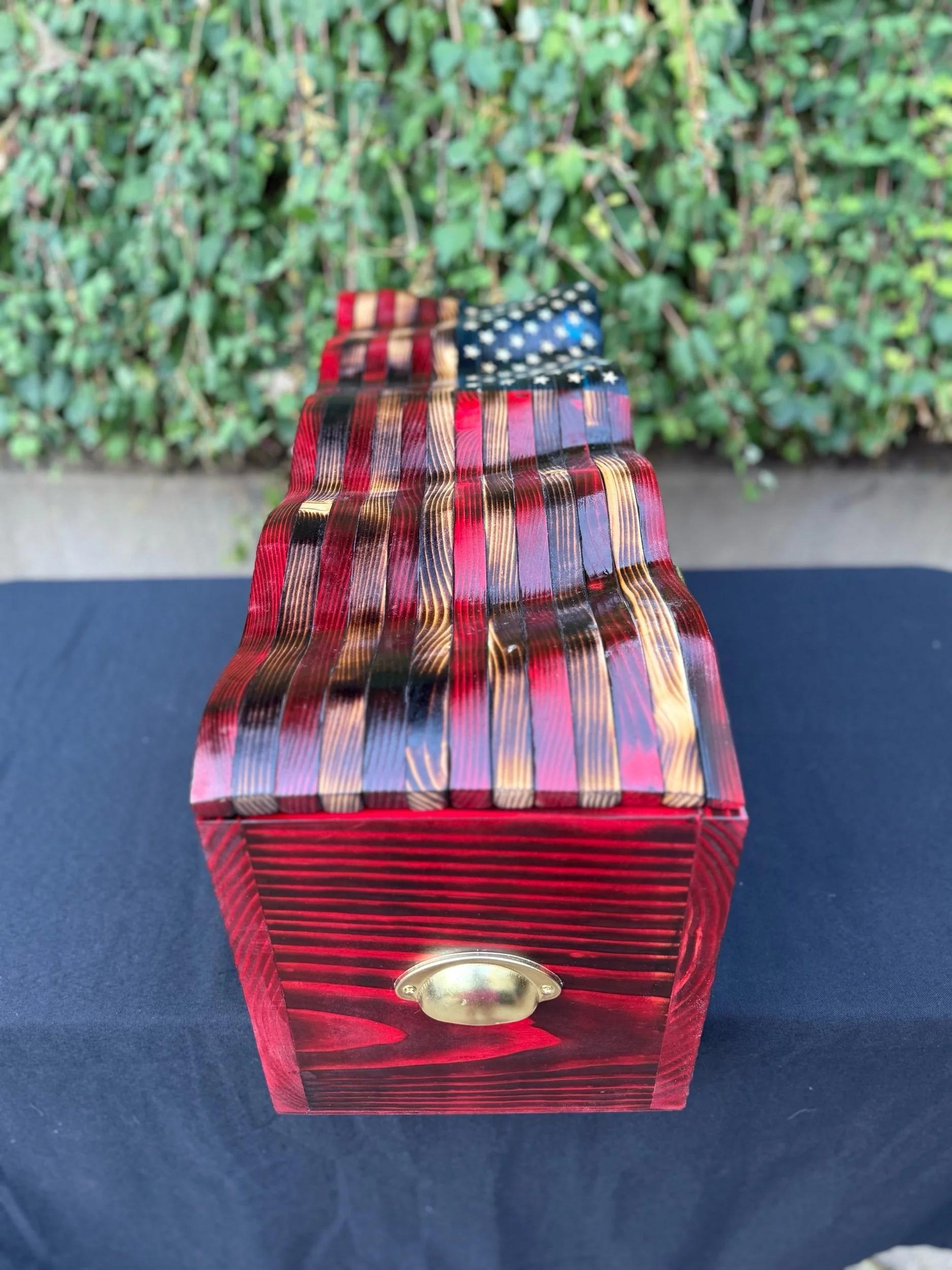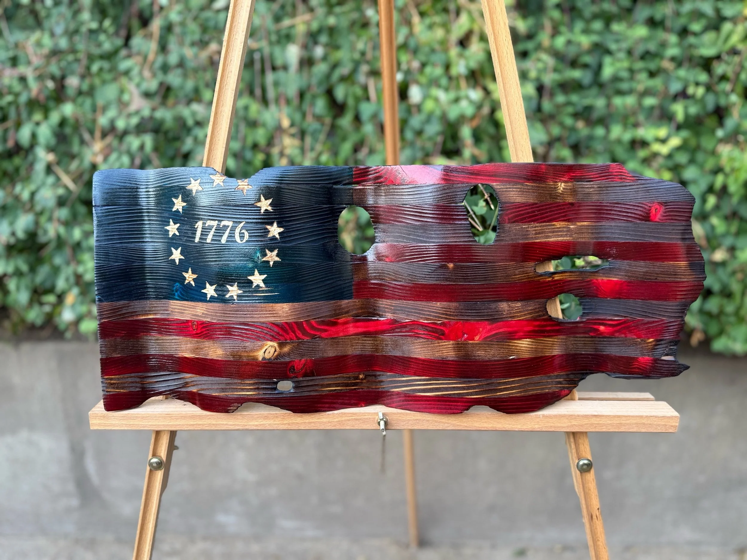 Categories: All Flags Barn Quilts Repurposed Vintage Home Goods Crochet Jewelry Cast Iron Seasoning All / American Footlocker $125.00 Double Wavy American Flag $100.00 Betsy Ross Flag $100.00 1776 Betsy Ross Flag $100.00 Lath Board Flag Sale Price: $50.00 Original Price: $80.00 Sale Small Wavy Flag $60.00 Small Deathwalker Flag $60.00 Deathwalker Flag $200.00 Framed American Flag Sale Price: $80.00 Original Price: $125.00 Sale American Flag/ Deathwalker Flag $200.00 Large Wavy Flag $200.00